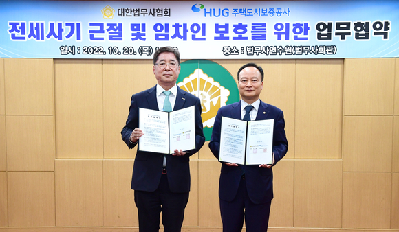주택도시보증공사(HUG)는 지난 20일 대한법무사협회와 전세피해지원을 위한 업무협약을 체결했다고 밝혔다.