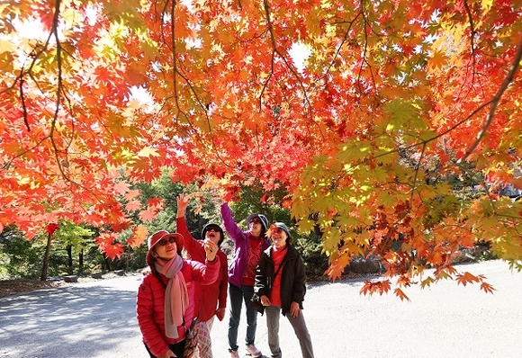 26일 경남 함양군 마천면 벽송사 단풍길에서 단풍이 곱게 물들어 관광객을 유혹하고 있다. (사진=함양군 제공)