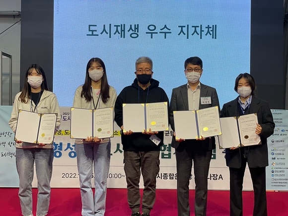 군은 도시혁신 산업박람회 개막식에서 산업박람회의 일환으로 진행된 도시재생 협치포럼 세미나에서 도시재생 사업추진과 지역맞춤형 도시재생 정책 연구로 지역공동체 및 사회적경제 활성화에 크게 이바지한 성과로 도시재생 정책부문 우수지자체상을 수상, 더불어 중간 지원조직 부문에서도 우수센터장상과 함양군 도시재생지원센터 직원 전원이 우수 코디상을 수상하는 등 군부지역 중 가장 높은 평가를 받았다.