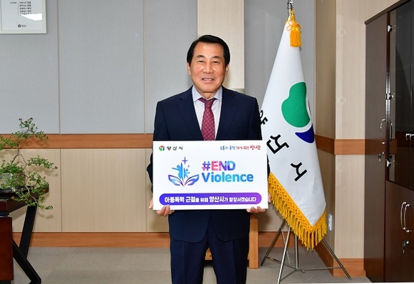 나동연 양산시장이 27일 유니세프 한국위원회와 외교부가 공동 주최하는 아동폭력 근절 'END Violence' 캠페인에 동참했다.