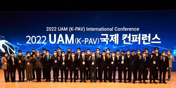 경남도, 진주시, 사천시, 고성군이 공동주최하고 경남테크노파크가 주관하는 '2022 UAM(K-PAV) 국제 컨퍼런스'가 27일 한국토지주택공사 본사에서 열렸다.
