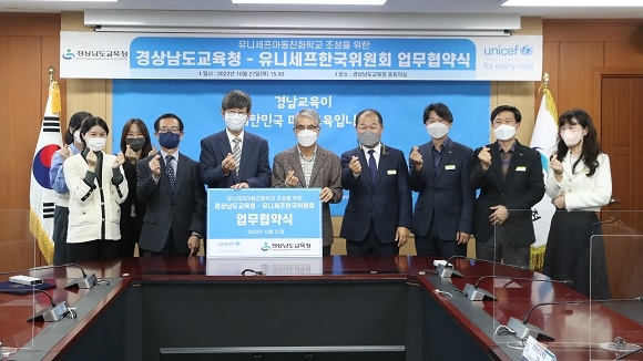 경남도교육청은 27일 본청 중회의실에서 유니세프한국위원회와 '유니세프아동친화학교' 조성을 위한 업무협약을 체결했다.