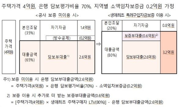 다만, 이 경우 공사 보증을 통한 추가 대출금액은 주택가격의 35%를 초과할 수 없으며 최대 보증한도는 3억원이다.