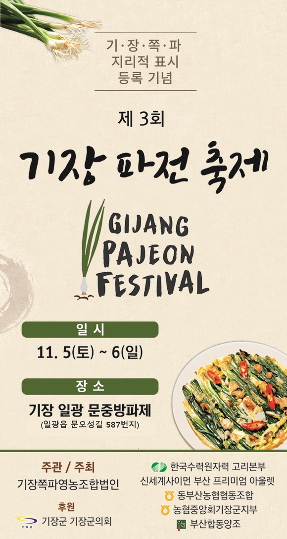 부산 기장군은 오는 5일, 6일 문중방파제 인근에서 '제3회 기장 쪽파·파전 홍보행사'를 개최한다고 밝혔다.