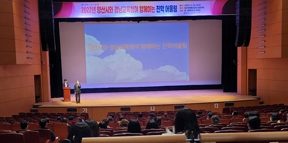 양산시는 경남도교육청과 공동 주관으로 지난 2일 양산문화예술회관에서 '양산시와 경남교육청이 함께하는 진학어울림' 입시설명회를 가졌다.