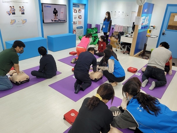 심폐소생술 체험관의 일반인 심폐소생술 교육은 기초(80분), 심화(180분) 과정으로 나뉘며 완수 시 수료증(2년 유효)을 준다.