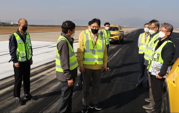 한국공항공사는 지난 9일 윤형중 사장이 항공기 안전운항 강화를 위해 김해국제공항 비행기 이착륙시설에 대한 특별안전점검을 실시했다고 밝혔다.