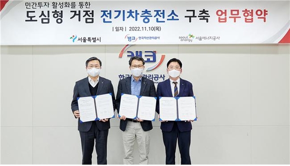 한국자산관리공사(캠코)는 10일 서울특별시, 서울에너지공사와 '민간투자 활성화를 통한 도심형 거점 전기차 충전소 구축 업무협약'을 체결했다고 밝혔다.