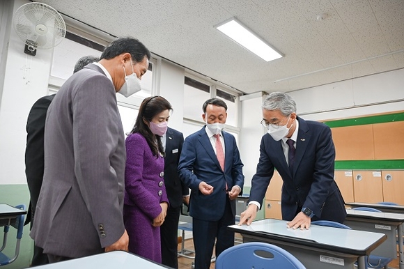 박 교육감은 일반시험실 수험생과 분리시험실 수험생의 분리된 동선과 감독관을 포함한 운영 요원들의 안전에 대해서도 꼼꼼히 살폈다. 분리시험실 감독관이 착용하는 4종 개인보호구(KF 마스크, 얼굴 가림막, 수술용 가운, 일회용 장갑)의 준비 상황을 점검했다.