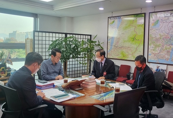 경남 김해시는 15일 국회를 방문해 김도읍 법사위원장을 만나 창원지방법원 김해지원 설치 지원을 건의했다고 밝혔다.