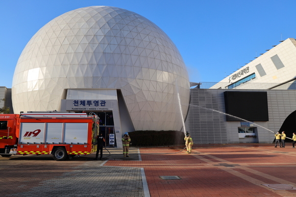 국립부산과학관은 지난 15일 천체투영관 앞 광장에서 기장소방서와 합동으로 '2022 소방합동훈련'을 실시했다고 밝혔다.