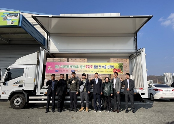 이날 수출 선적식에는 경남 스마트팜 혁신밸리 청년창업농을 비롯해 손재규 밀양시농업기술센터소장, 박형계 밀양농협 공판장지점장, 밀양시 직원 등이 참석해 스마트팜 혁신밸리에서 생산된 토마토의 일본 첫 수출을 기념했다.
