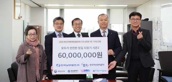 남부발전은 17일 부산시청 도시균형발전실에서 협업기관인 부산지역문제해결플랫폼, 시민단체 성평등 위아, 한국자산관리공사와 함께 주거 취약지역 안전 인프라 구축사업을 위한 기부금 전달식을 개최했다고 밝혔다.