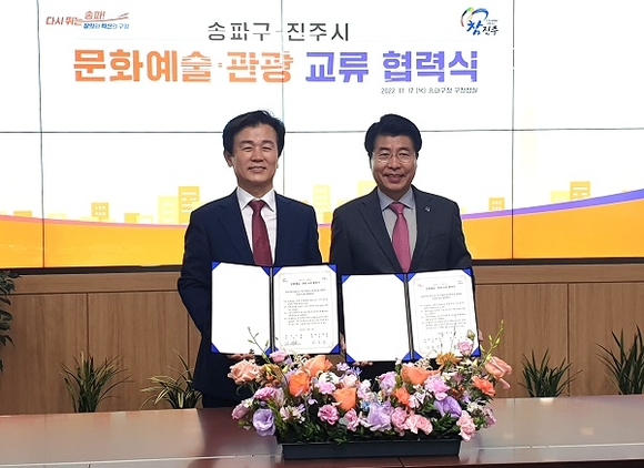 경남 진주시는 17일 서울 송파구청에서 송파구와 문화·관광산업 교류를 위한 업무협약을 체결했다.