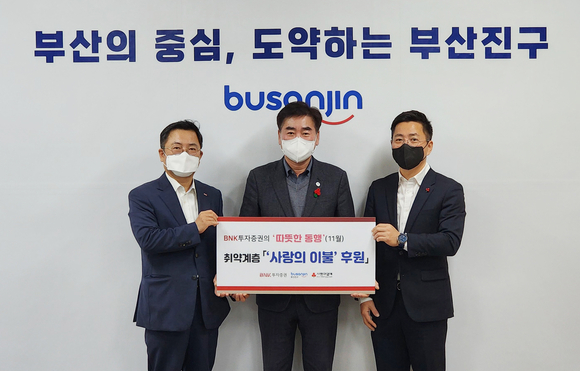 BNK투자증권은 '사랑의 겨울 이불 나눔' 사업을 통해 총 1500만원 상당의 이불 240채를 기부했다고 18일 밝혔다.