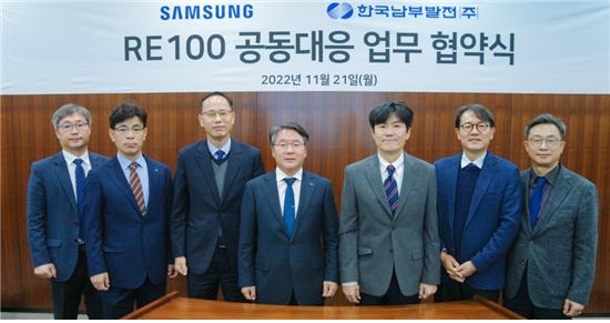 한국남부발전은 21일 삼성전자 화성사업장에서 국가 탄소중립 달성과 수출 경쟁력 확보를 위한 'RE100 공동대응 상호협력 업무협약'을 체결했다고 밝혔다.