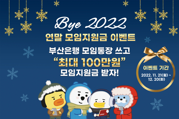 BNK부산은행은 오는 12월 20일까지 'Bye 2022 연말 모임지원금 이벤트'를 실시한다고 22일 밝혔다.