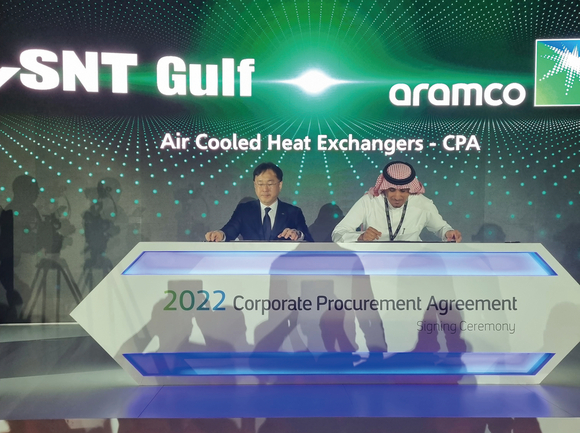 SNT에너지의 사우디아라비아 현지법인인 SNT걸프(Gulf)는 사우디아라비아 다란에서 사우디 아람코와 Air Cooler(에어쿨러) 관련 CPA 서명식을 가졌다고 23일 밝혔다.