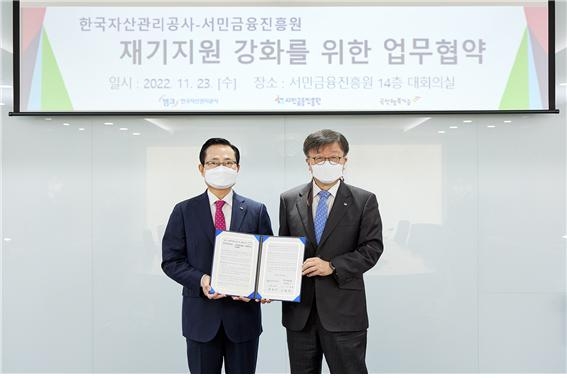 한국자산관리공사(캠코)는 23일 서민금융진흥원과 '금융취약계층 재기지원 강화를 위한 업무협약'을 체결했다고 밝혔다.