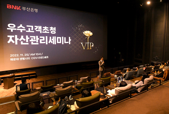 BNK부산은행은 24일, 25일 양일간 해운대 센텀시티 CGV 씨네드쉐프에서 '우수고객 초청 자산관리 세미나'를 성황리에 개최했다고 밝혔다.