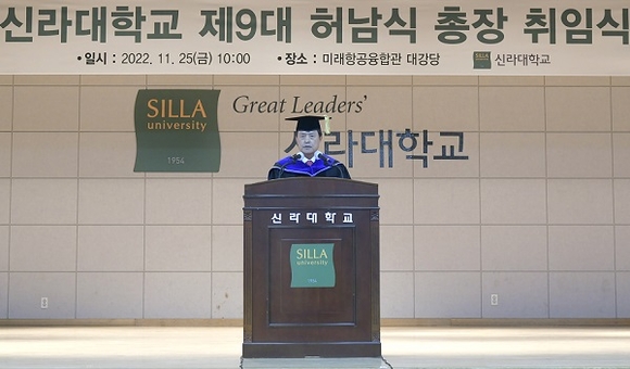 신라대학교는 25일 오전 10시 교내 미래항공융합관 대강당에서 제9대 허남식 총장 취임식을 가졌다.