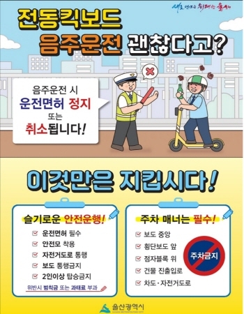 한편 울산경찰청 통계에 따르면 지난해 5월 13일 ‘도로교통법’ 개정 이후, 울산에서 개인형 이동장치가 일으킨 교통사고는 총 43건(2021년 16건, 2022년 27건(잠정집계))이다.