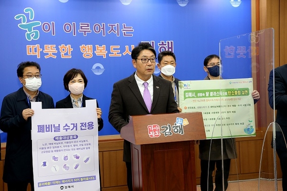 홍태용 김해시장은 29일 '생활 속 탈 플라스틱 종합계획'을 추진해 연간 1만 4700t의 플라스틱 쓰레기를 감축해 4만 630t의 탄소를 줄이겠다고 발표했다.