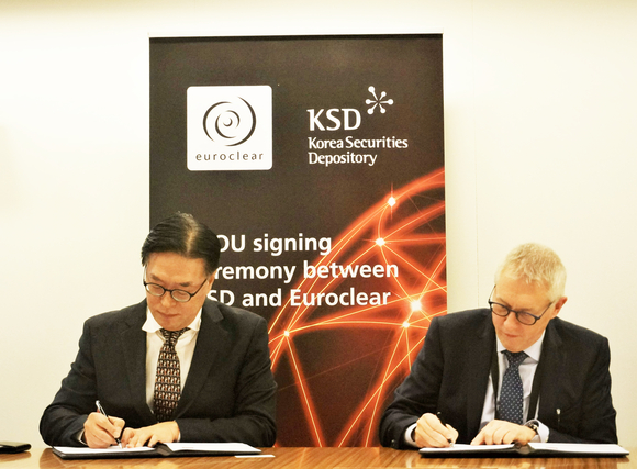 한국예탁결제원은 지난 11월 29일, 12월 1일 각각 유로클리어(벨기에) 및 클리어스트림(룩셈부르크) 본사에서 '국채통합계좌 구축 관련 양해각서'를 체결했다고 밝혔다.