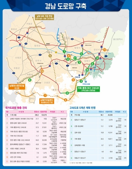 도 관계자는 “국가도로망 기본구상 및 도로사업 타당성 연구용역을 통하여 지역별 수요를 감안한 체계적인 도로망 확충방안을 마련하여 국가계획 수립 시 반영될 수 있도록 선제적으로 대응해 나가겠다”며 “특히 도민들의 일상생활 편의를 위한 신규 도로망 발굴 및 조기 개설 전략을 마련하여 살기좋은 경남, 편리한 도로환경 조성을 위해 최선을 다하겠다”고 말했다.