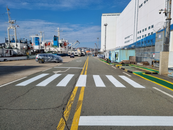 이번에 감천항 동편부두, 다대부두, 관공선부두, 삼한안벽 등 3.5km 구간의 기존 안전통행로를 새로 도색해 시인성을 높였다.