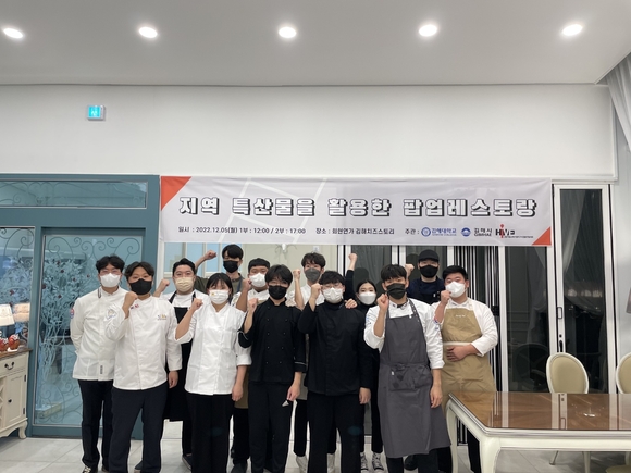 김해대 HiVE센터는 대학의 호텔외식조리과와 김해시 인재육성과, 농업기술과, 관광마케팅과, 지역의 조리전문가와 함께 지역 대표 식자재를 활용한 코스 요리 레시피와 특산품 개발을 위한 공동 프로젝트를 진행했고, 해당 성과를 평가·공유하기 위한 팝업 레스토랑을 운영하게 됐다.