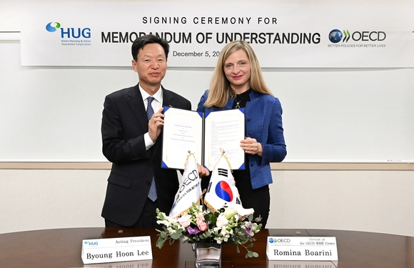 주택도시보증공사(HUG)는 OECD WISE센터와 지난 5일 공동연구 추진 등을 위한 업무협약을 체결했다고 6일 밝혔다.