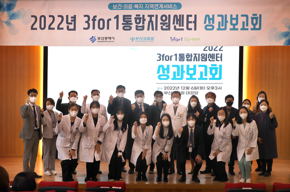 부산의료원은 6일 대강당에서 올 한해 3for1통합지원센터의 운영 성과를 발표하고 사례를 공유하는 '2022년 3for1통합지원센터 성과보고회'를 개최했다고 밝혔다.