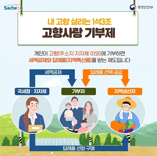 한편 '고향사랑기부제'는 개인이 자신의 거주지가 아닌 다른 지방자치단체(광역·기초)에 연간 500만 원 한도 내에서 기부할 수 있는 제도로 기부금은 지역주민의 복리증진에 필요한 사업에 사용하게 된다.