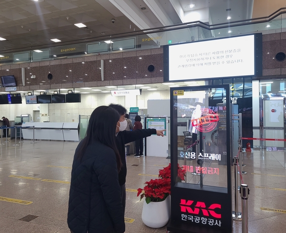 한국공항공사는 김해국제공항 국내선 여객청사 내에 3D 홀로그램을 이용한 기내반입금지물품 안내를 시작했다고 6일 밝혔다.