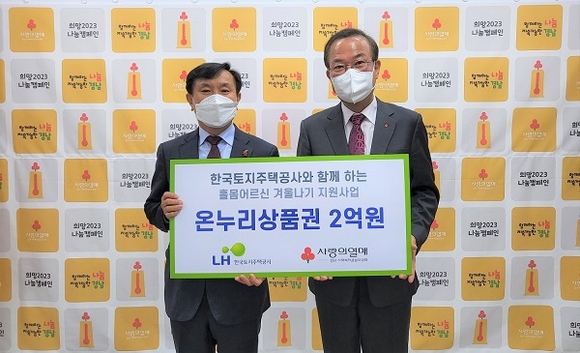 한국토지주택공사(LH)는 7일 LH 임대주택에 거주하는 홀몸어르신들의 따뜻한 겨울나기에 앞장서 사랑의 열매(사회복지공동모금회)에 온누리상품권 2억 원을 전달했다. (사진=LH 제공)