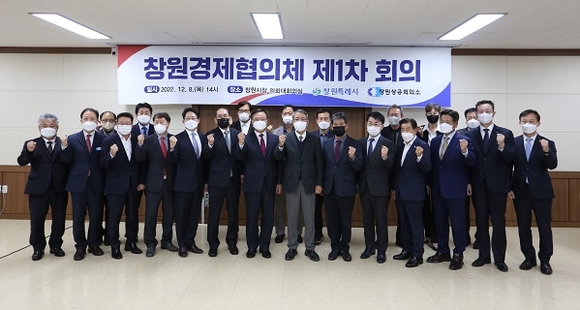 경남 창원시와 창원상공회의소가 지역 주요 경제현안 논의와 정책 공유를 위해 '창원경제협의체'를 발족하고, 8일 오후 2시 창원시청 의회대회의실에서 홍남표 시장, 구자천 창원상의 회장 등 협의체 위원 22명이 참석한 가운데 제1차 회의를 가졌다.