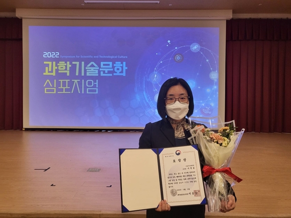 국립부산과학관은 전시장운영팀 이청실 사무원이 2022년 과학문화 확산 유공자로 선정돼 과학기술정보통신부 장관 표창을 받았다고 13일 밝혔다. 이 사무원은 과학관 관람객 서비스의 역량 강화 및 배려계층 대상 과학문화 프로그램 운영과 지원을 통해 과학기술문화확산에 기여한 공로를 인정받았다.