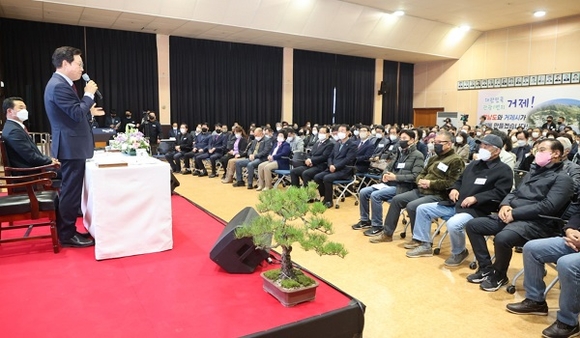 박완수 경남도지사가 13일 거제를 방문해 250여 명의 시민들과 대화의 시간을 가졌다.