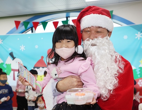 '일일 산타'로 변신한 박완수 경남도지사가 22일 오전 경남도청어린이집을 방문했다.
