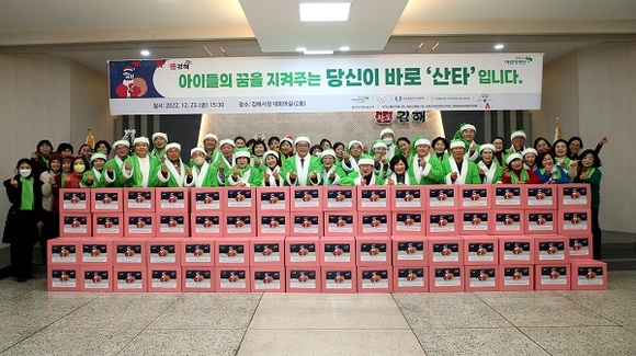 경남 김해시는 23일 시청 대회의실에서 초록우산 어린이재단 경남지역본부와 함께 지역 저소득 아동을 위한 산타원정대 '산타는 바로 너' 행사를 가졌다.