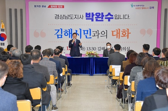 박 도지사는 김해시청에서 열린 '도민과의 대화'에서 참석한 시민들의 질문과 건의에 하나하나 답변하며, 내년도는 경제회복의 원년으로 가시적인 성과와 함께 좋은 일자리로 젊은이들이 지역에서 기반을 잡는 경남을 만들겠다고 의지를 밝혔다.