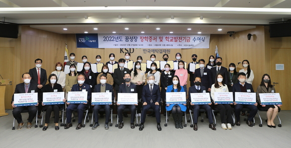 한국예탁결제원 KSD나눔재단은 지난 27일 서울사옥에서 2022년 KSD 꿈성장 장학사업에서 우수한 성적을 거둔 학생 및 학교에 2억 4000여만 원의 장학금과 학교발전기금을 지원했다고 밝혔다.