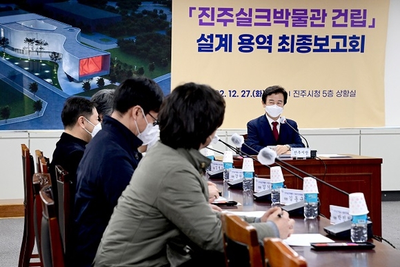 경남 진주시는 27일 시청 5층 상황실에서 문산읍 실크전문농공단지 입구에 건립 예정인 '진주실크박물관' 설계용역 최종보고회를 가졌다.