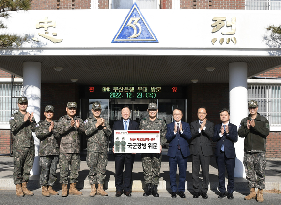 BNK부산은행은 29일 오전 연말을 맞아 해운대구에 소재한 '육군 제53보병사단'에 방문해 위문금을 전달했다고 밝혔다.