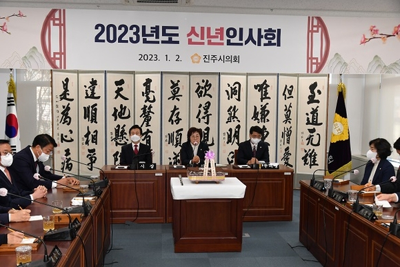 이어 시의회는 의사당 2층 회의실에서 조규일 진주시장과 함께 2023년 신년인사회를 열어 새해 의정업무 각오를 새롭게 다졌다. 또 정책지원관을 비롯해 신규 공무원에 대한 임용식도 열어 정책지원관 5명 등 임기제 공무원 6명을 임명했다.