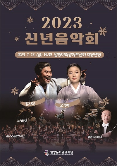 밀양문화관광재단은 오는 13일 오후 7시 30분 밀양아리랑아트센터 대공연장에서 '2023년 신년음악회' 공연을 진행한다.