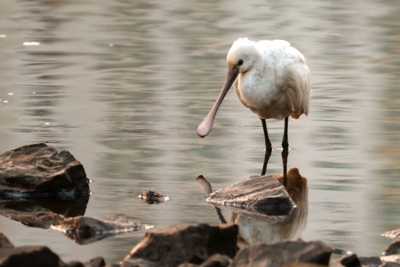 노랑부리저어새(천연기념물, 멸종위기야생생물Ⅱ급)는 지난 12월 28일 울산 북구 동천에서 1마리가 먹이활동하고 있는 것을 태화강철새조사를 하던 철새관찰조사요원들이 발견했다.