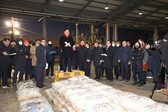 홍남표 창원시장이 25일 오전 6시 마산수협 본소위판장에서 계묘년 새해를 맞아 열린 초매식 및 풍어제에 참석했다.