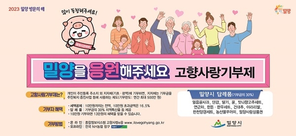 올해 1월 1일부터 시행된 고향사랑기부제가 점점 활기를 띠는 가운데 경남 밀양시에 고향사랑기부제 1호, 2호 고액기부자가 잇달아 탄생했다.